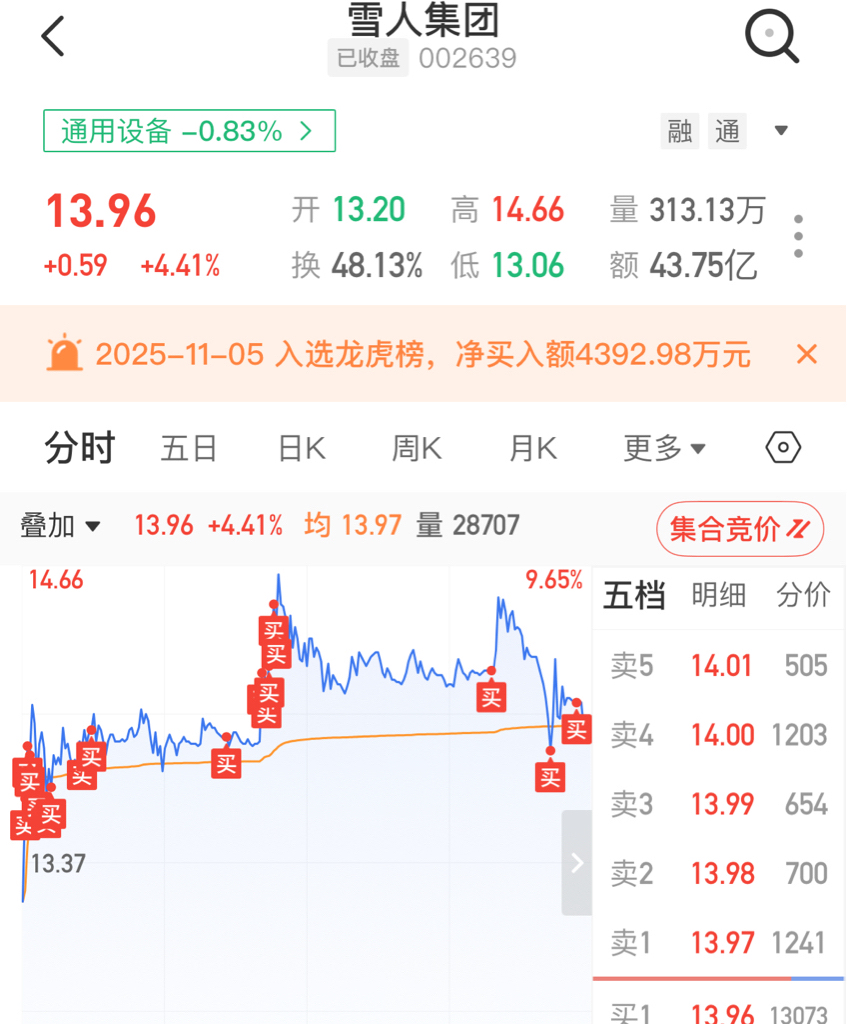 $雪人集团(SZ002639)$ 70个点到手,今天开始卖一点