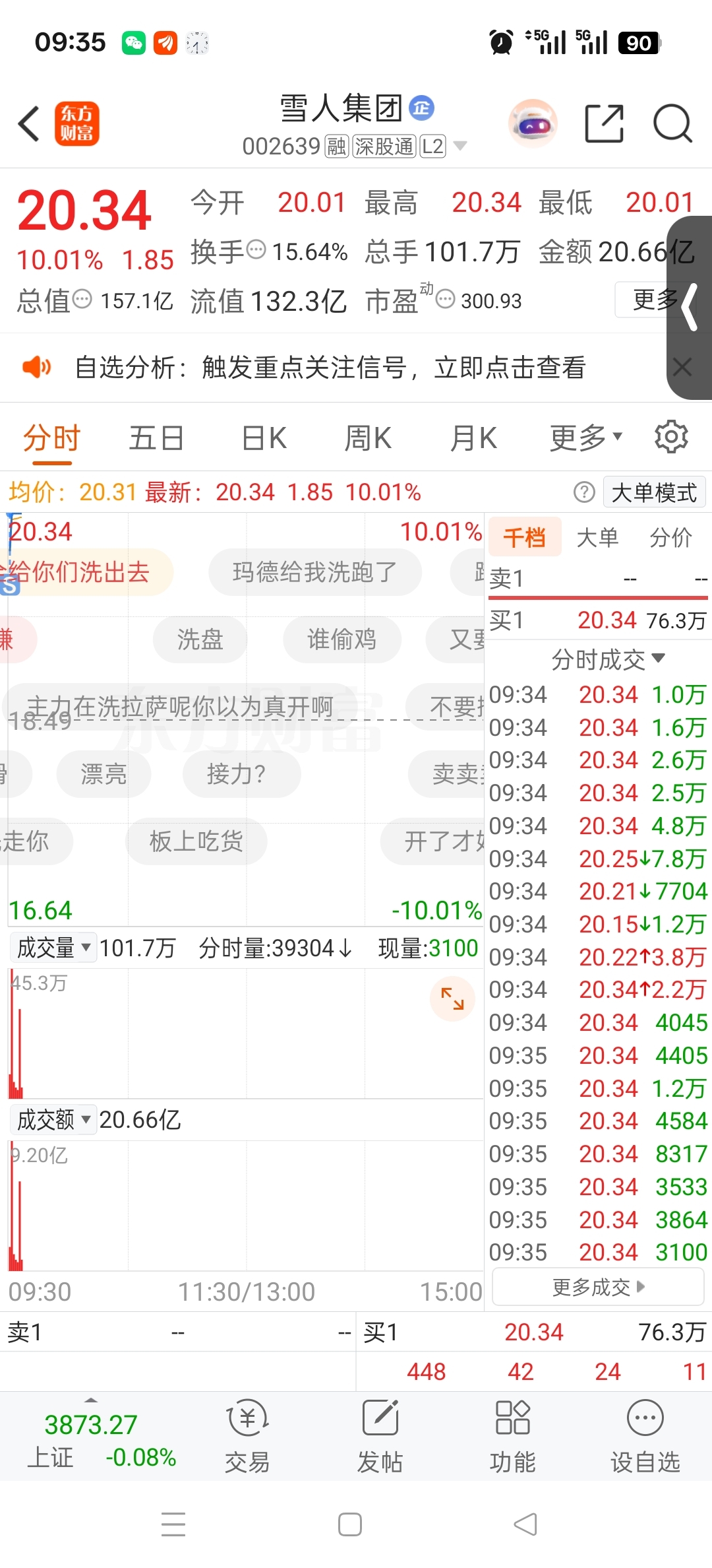 $雪人集团(SZ002639)$ 昨天水下5个点买的,开盘就撤,留下发财