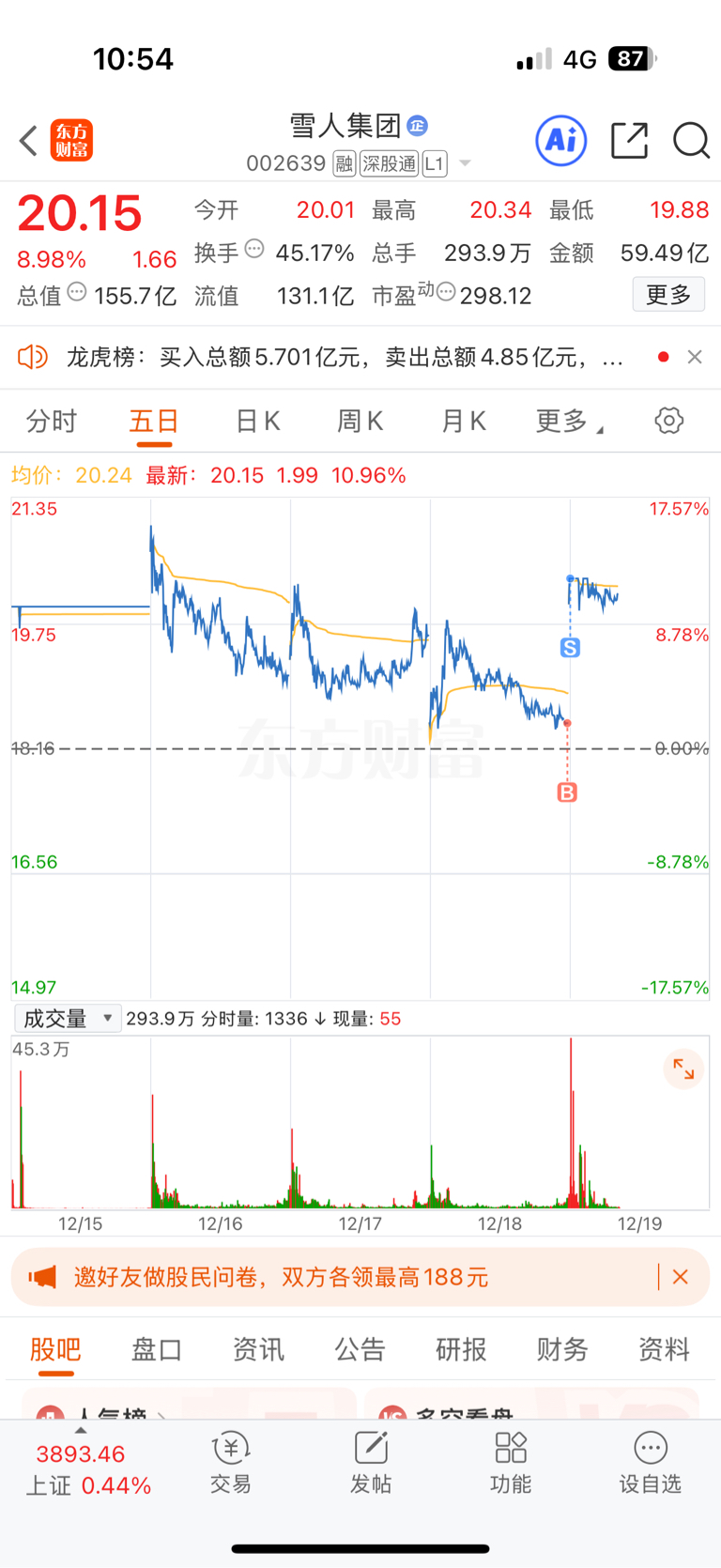 $雪人集团(SZ002639)$ 尾盘坚定买入,吃到肉啦