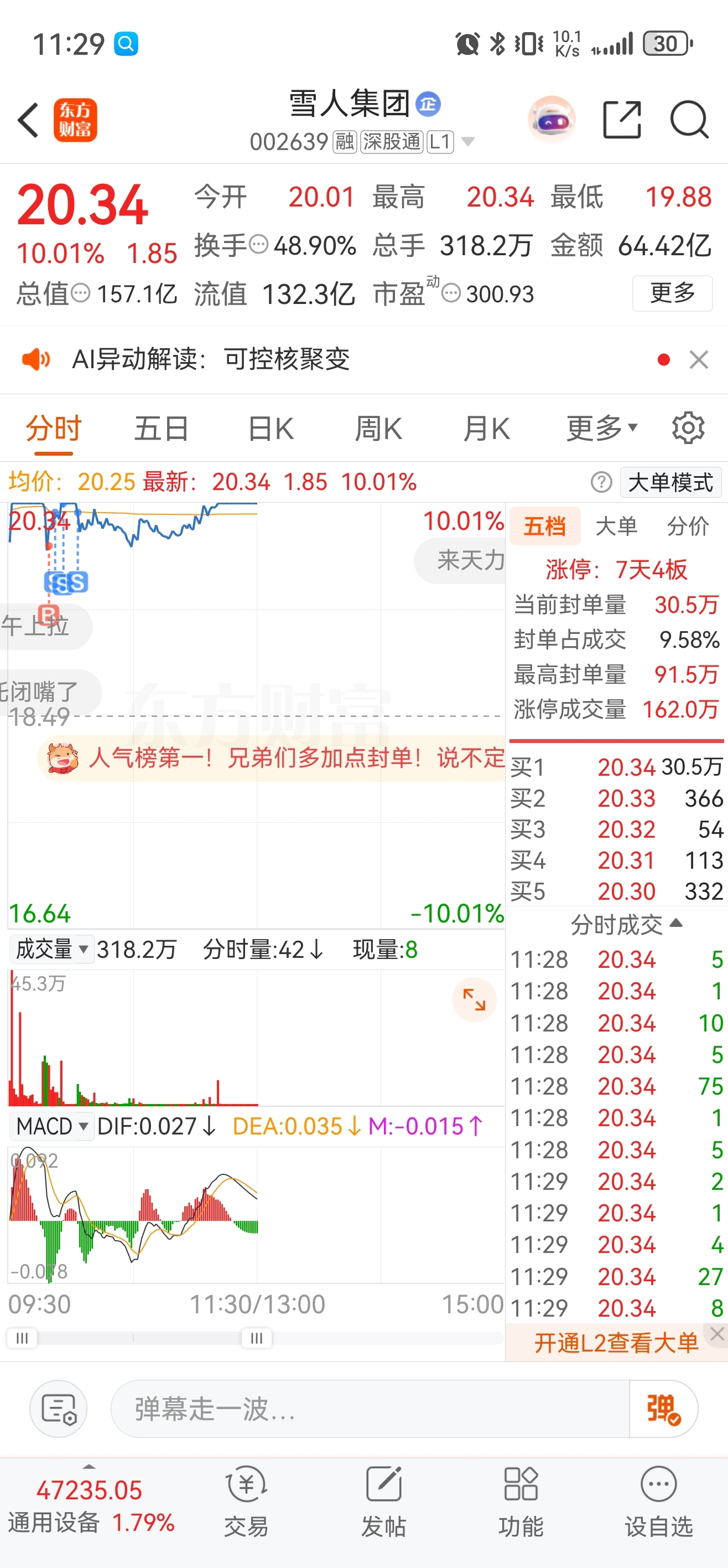 $雪人集团(SZ002639)$ 清完了,剩下今天做t的卖不掉,当永久股东了