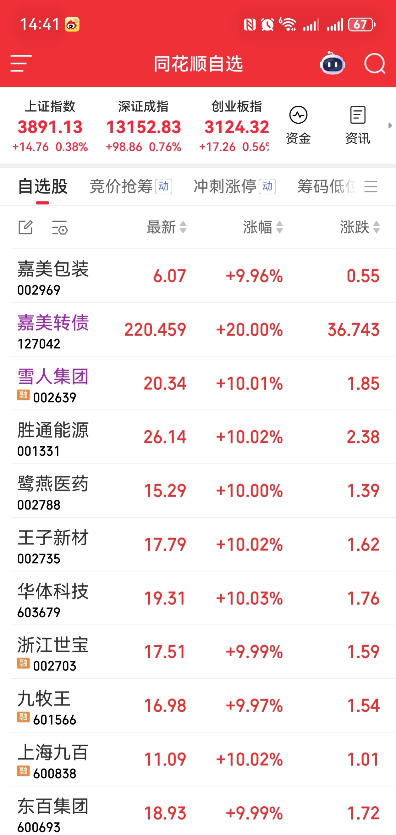 12月19日9点28分:1.嘉美包装,嘉美转债开盘+8%低吸小肉。2.雪人集团,