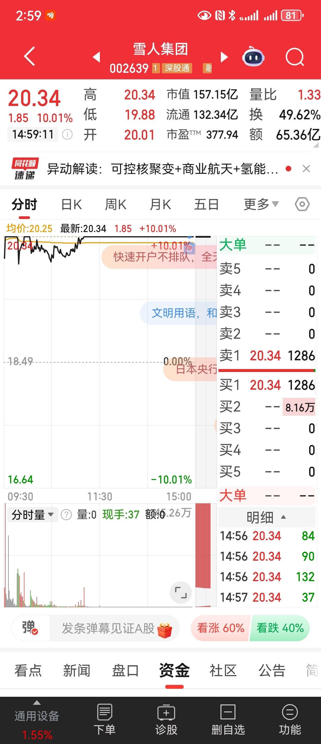 $雪人集团(SZ002639)$ 唉,需要用钱,只能咬牙出一部分了
