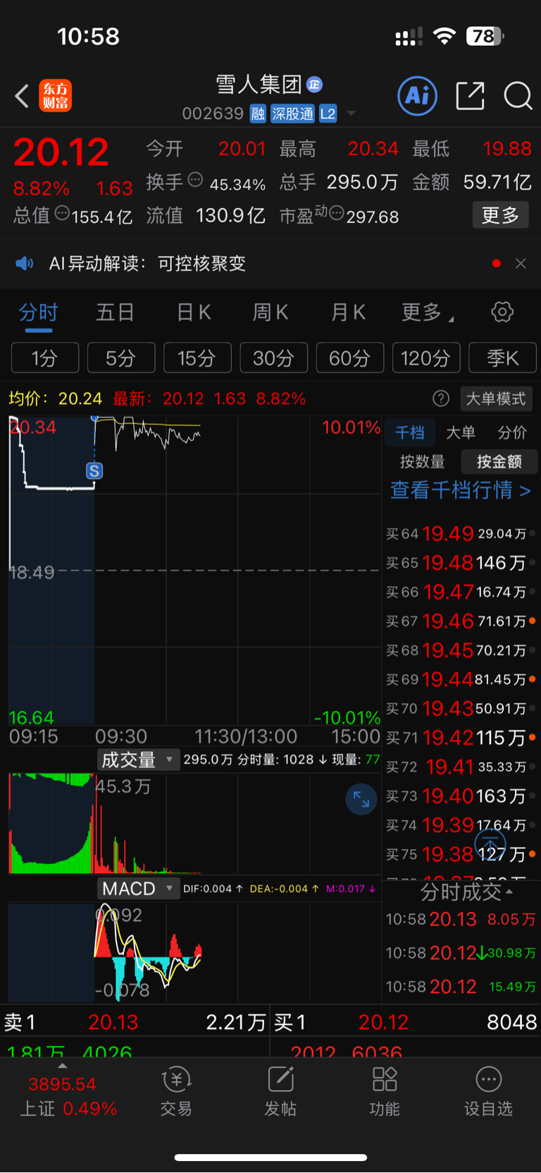 $雪人集团(SZ002639)$ 跑了跑了,赚点就行了,贪心死于闪崩,周一涨啥样我也不后悔