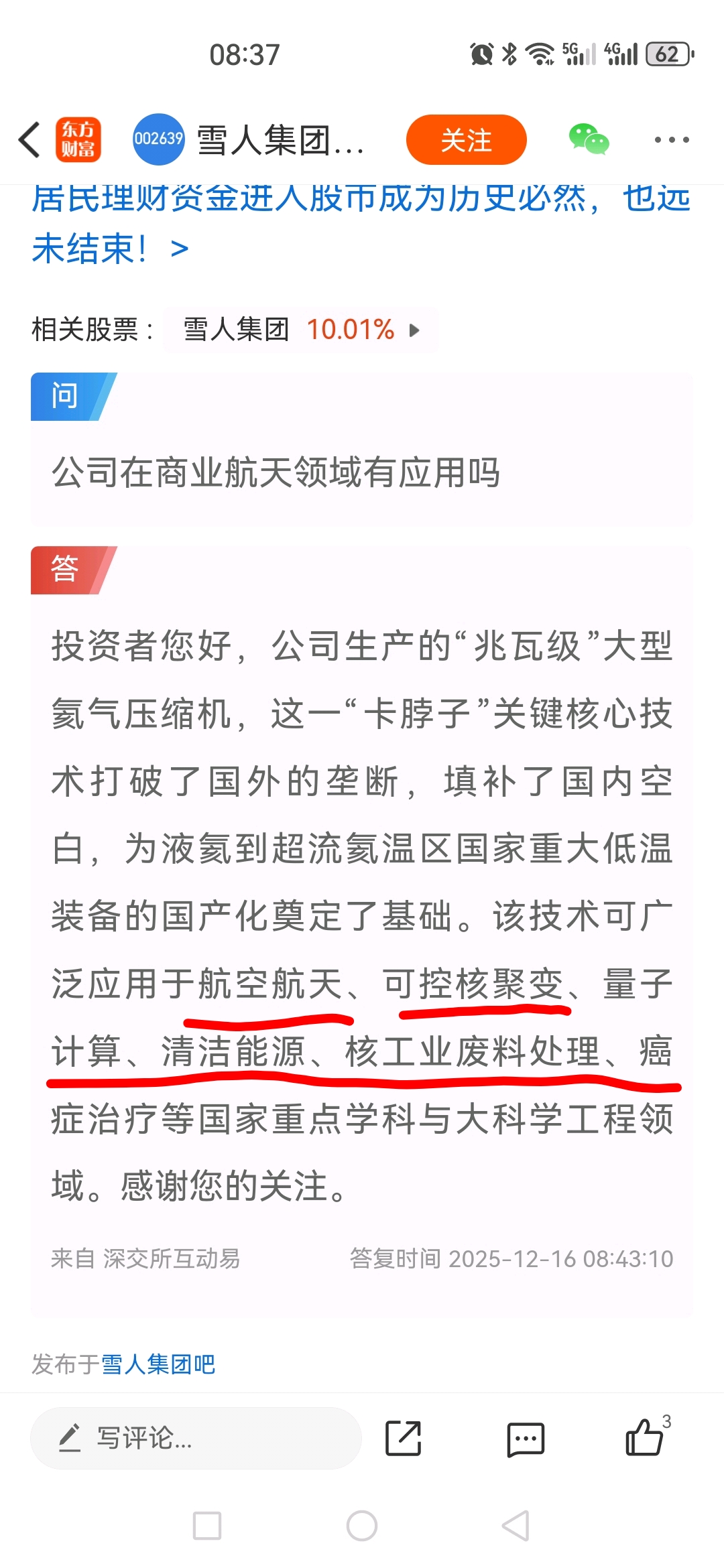 $雪人集团(SZ002639)$ 雪人还有航空航天"卡脖子"技术