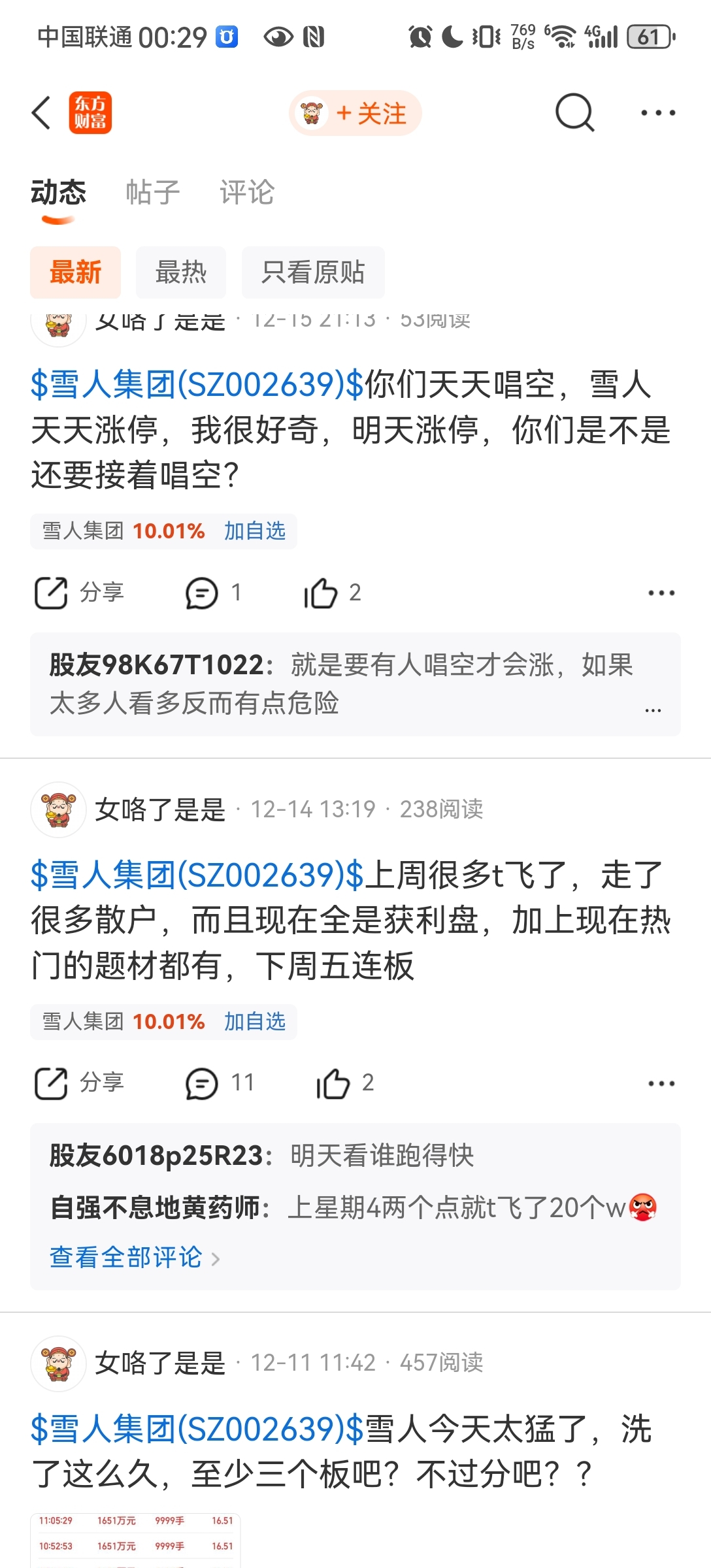 $雪人集团(SZ002639)$ 我都不想喷这个还删我评论,有筹码的时候吹的最凶就是她天天3板5板的,现在没筹码了就变色龙了?