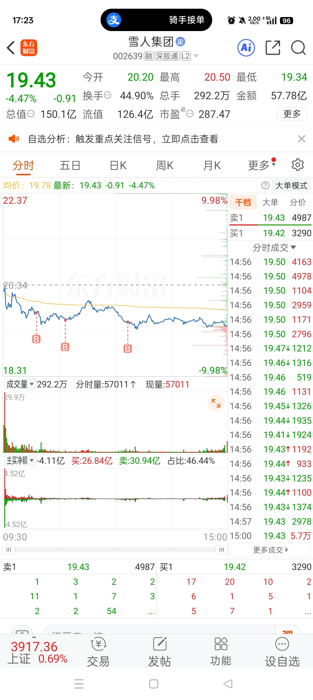 $雪人集团(SZ002639)$ 6成仓位被套一个多点,明天能不能让我解套出去