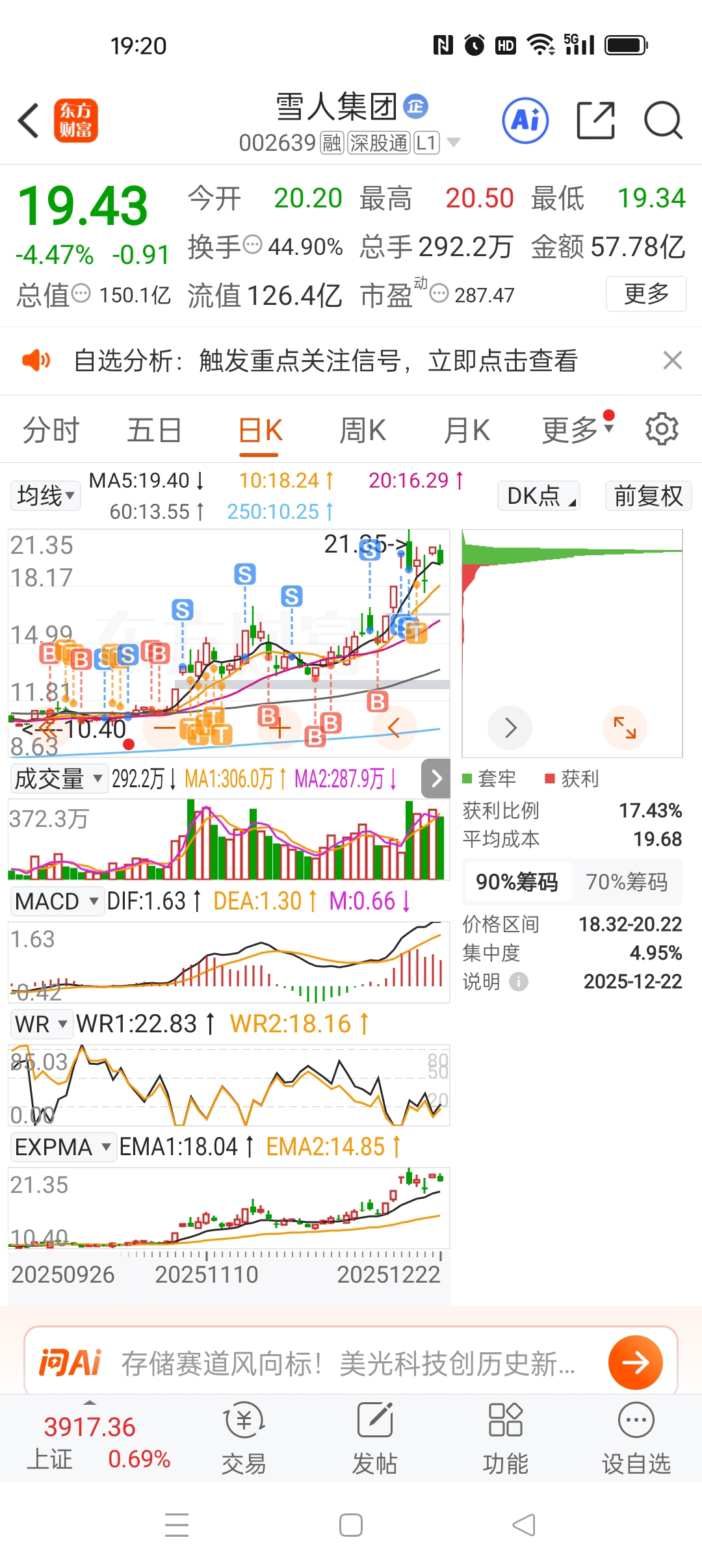 $雪人集团(SZ002639)$ 明天到10日线就买点,不到不买了