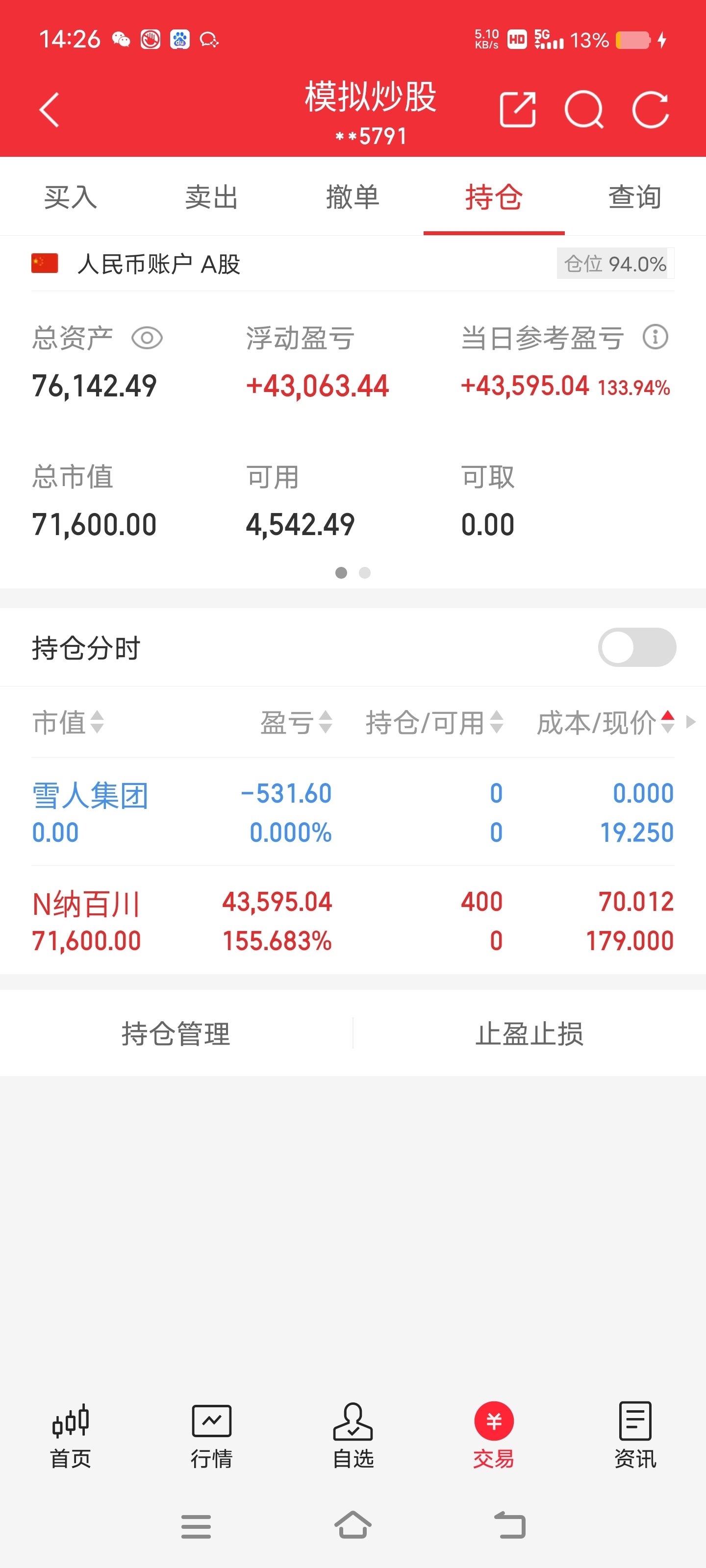 $雪人集团(SZ002639)$ 真搞笑,今天模拟炒股随便买的哈