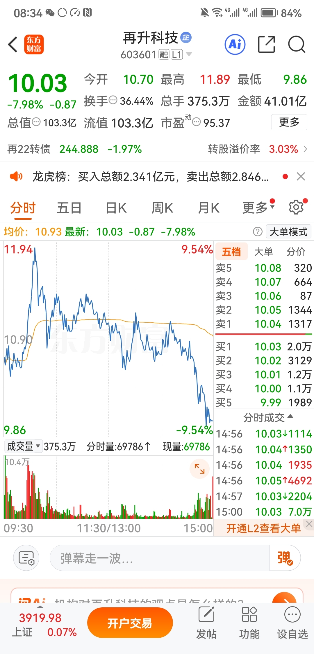 对比一下再升科技,谁是拉升出货。