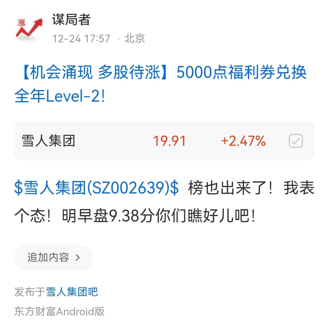 温馨提示: 1.根据《证券法》规定,禁止编造、传播虚假信息或者误导性信息,扰乱证券市场;2.用户在本社区发表的所有资料、言论等仅代表个人观点,与本网站立场无关,不对您构成任何投资建议。用户应基于自己的独立判断,自行决定证券投资并承担相应风险。《东方财富社区管理规定》