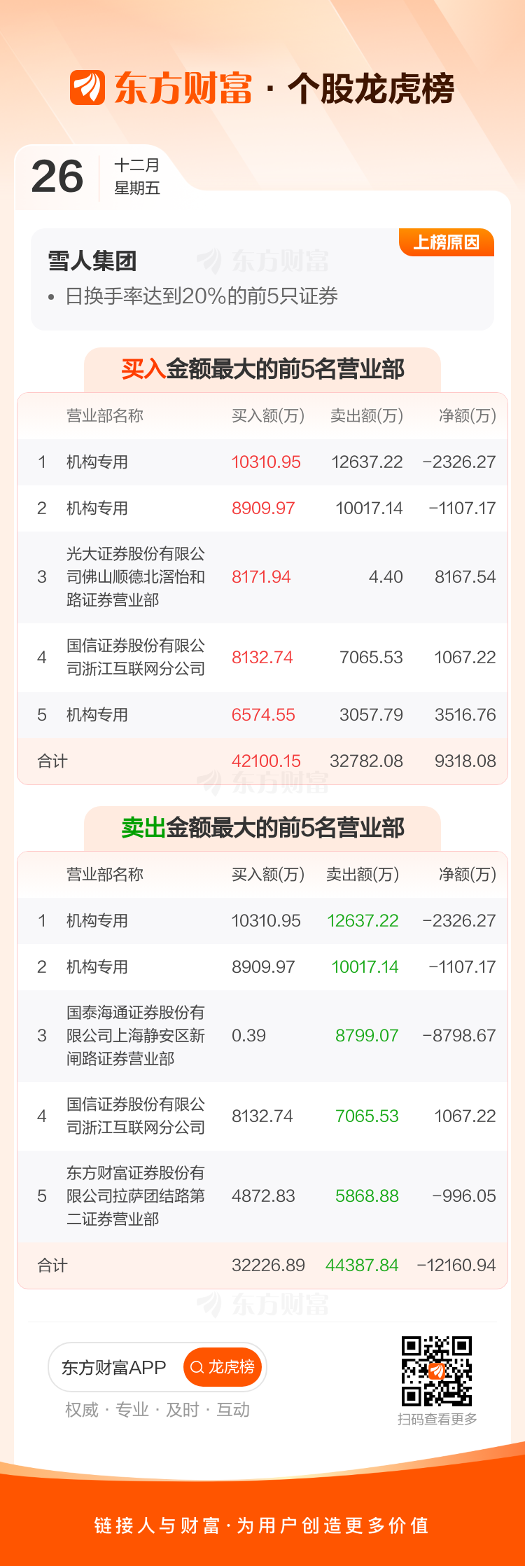 雪人集团(002639)龙虎榜数据(12-26)