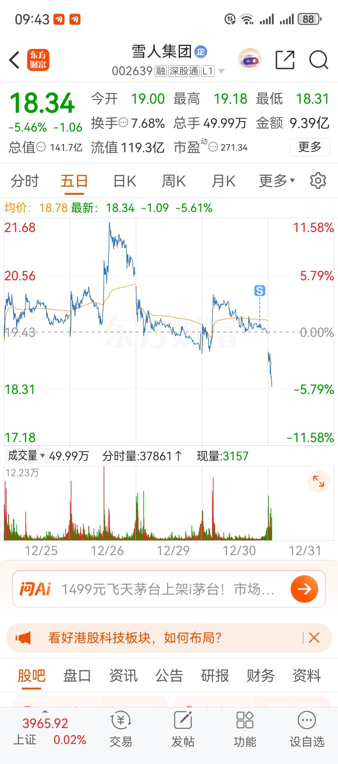 $雪人集团(SZ002639)$ 扛不住,割了