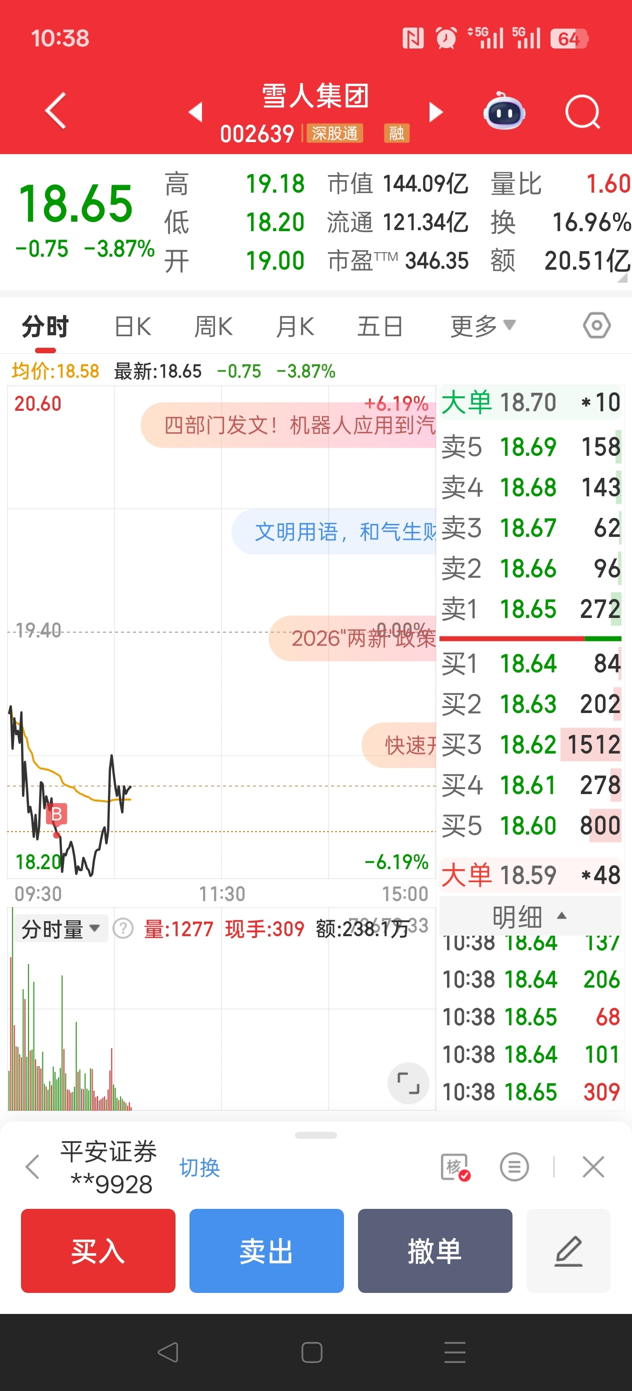 $雪人集团(SZ002639)$ 经过计算18.3抄底能赚钱