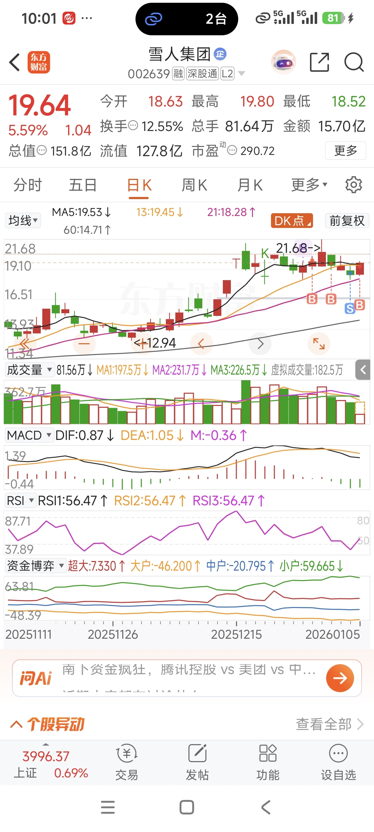 $雪人集团(SZ002639)$ 昨天最低点卖了,今天又接回来了,看你能不能给力点。