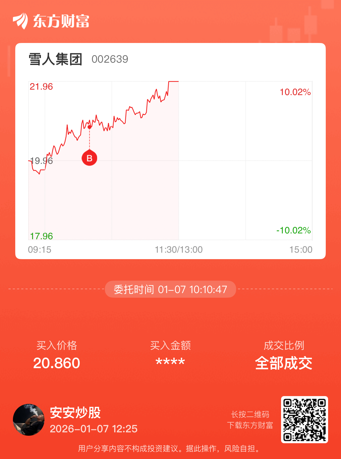 郑重声明:用户在财富号/股吧/博客等社区发表的所有信息(包括但不限于文字、视频、音频、数据及图表)仅代表个人观点,与本网站立场无关,不对您构成任何投资建议,据此操作风险自担。请勿相信代客理财、免费荐股和炒股培训等宣传内容,远离非法证券活动。请勿添加发言用户的手机号码、公众号、微博、微信及QQ等信息,谨防上当受骗!