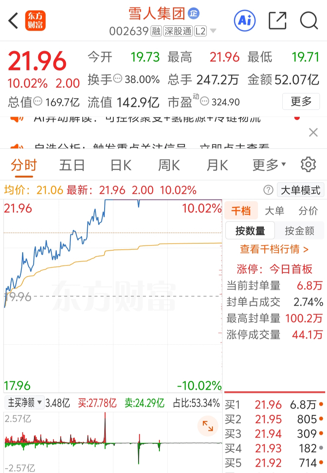 昨天清仓国机重装、它今天涨停;今天追雪人,好在封板成功。