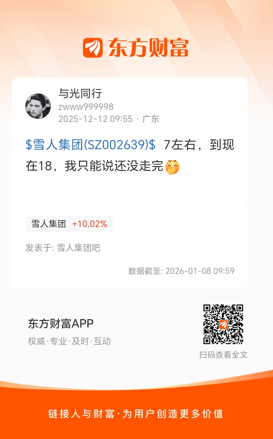 $雪人集团(SZ002639)$  7左右,到现在18,我只能说还没走完