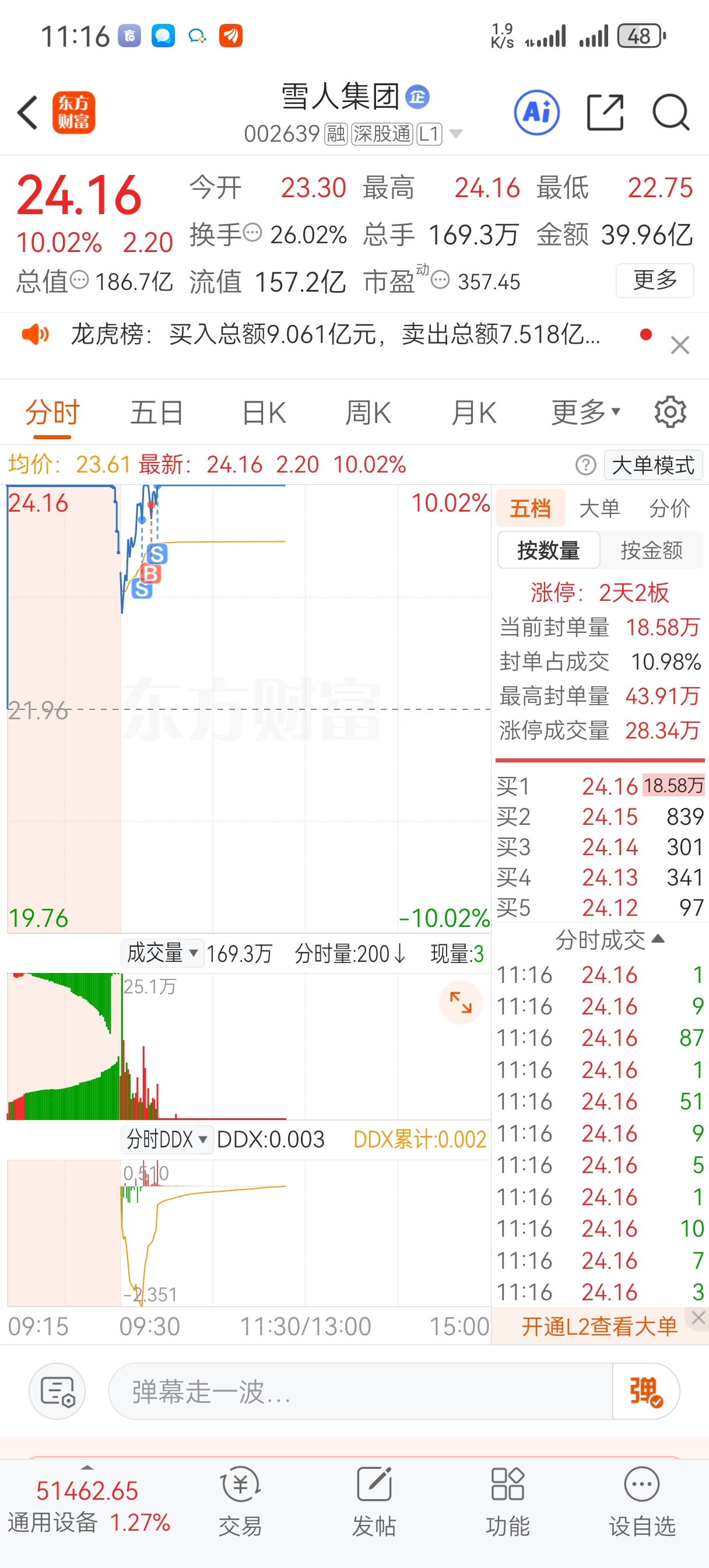 $雪人集团(SZ002639)$ 本来想卖的,不小心点成了买,无语