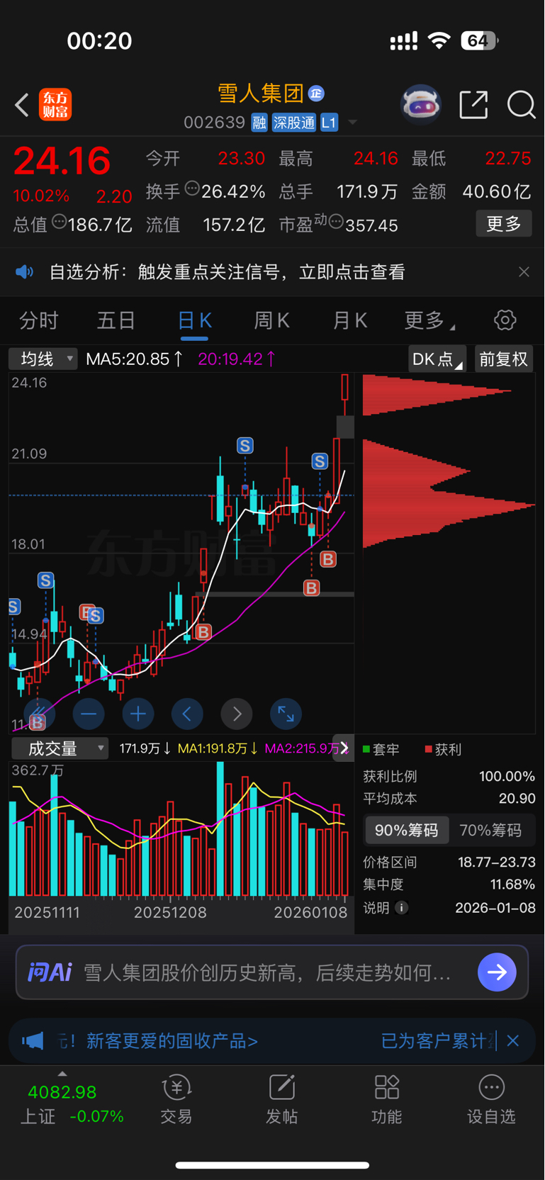 明天只要新高你敢回落3个点,我就只能砸了。