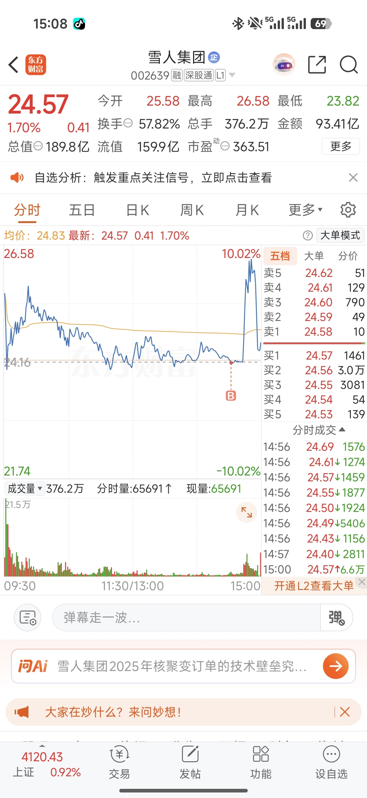 $雪人集团(SZ002639)$ 还以为吃上肉了