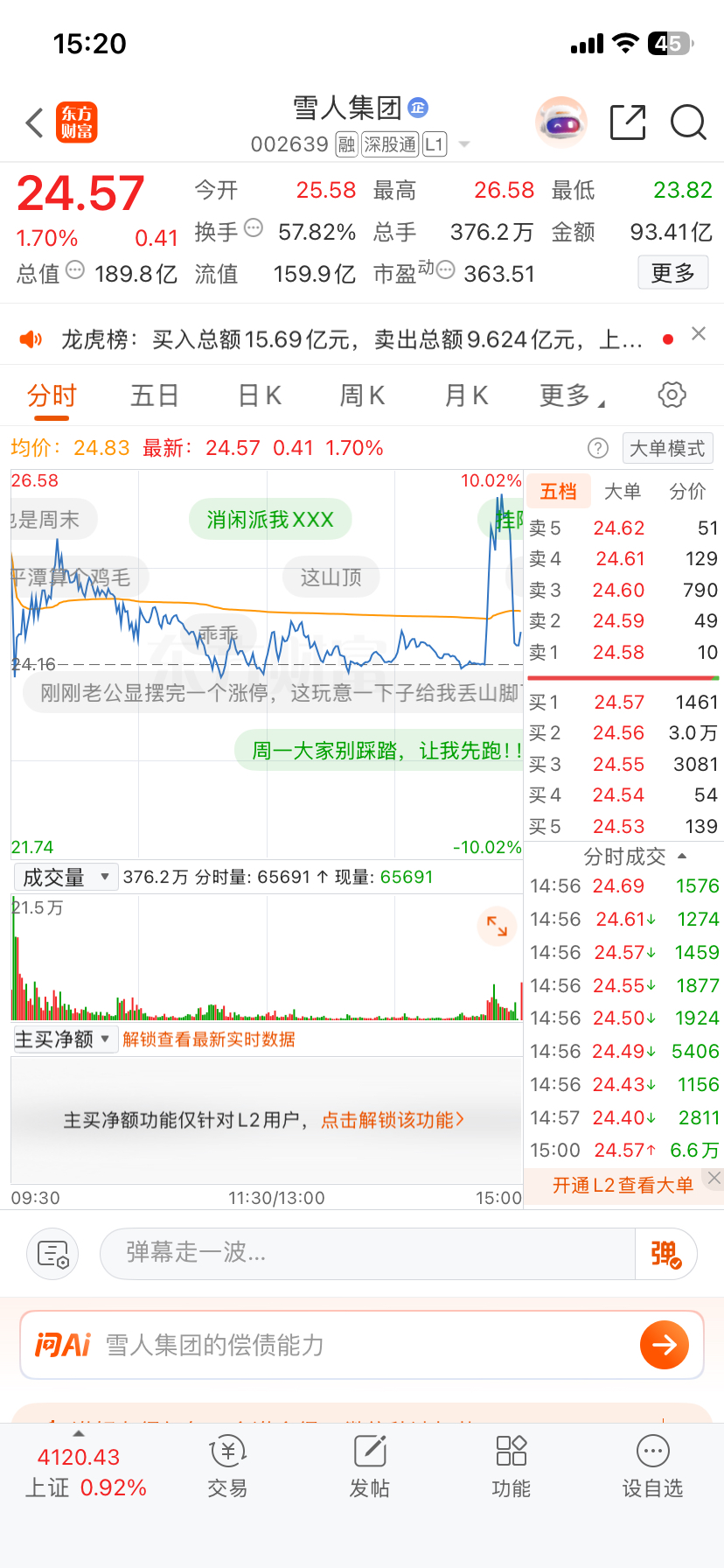 $雪人集团(SZ002639)$