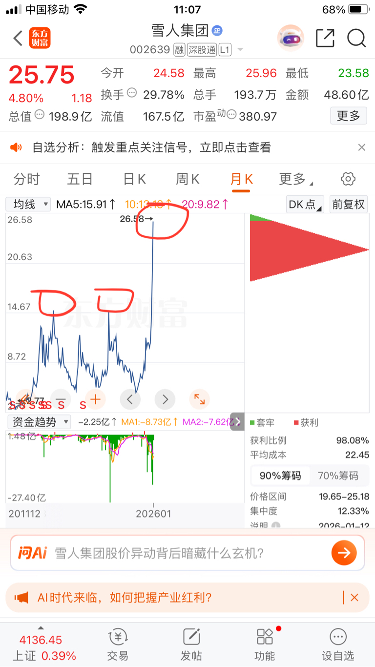 $雪人集团(SZ002639)$ 谁要是用历史的角度看现在就大错特错了!没有最高,只有更高