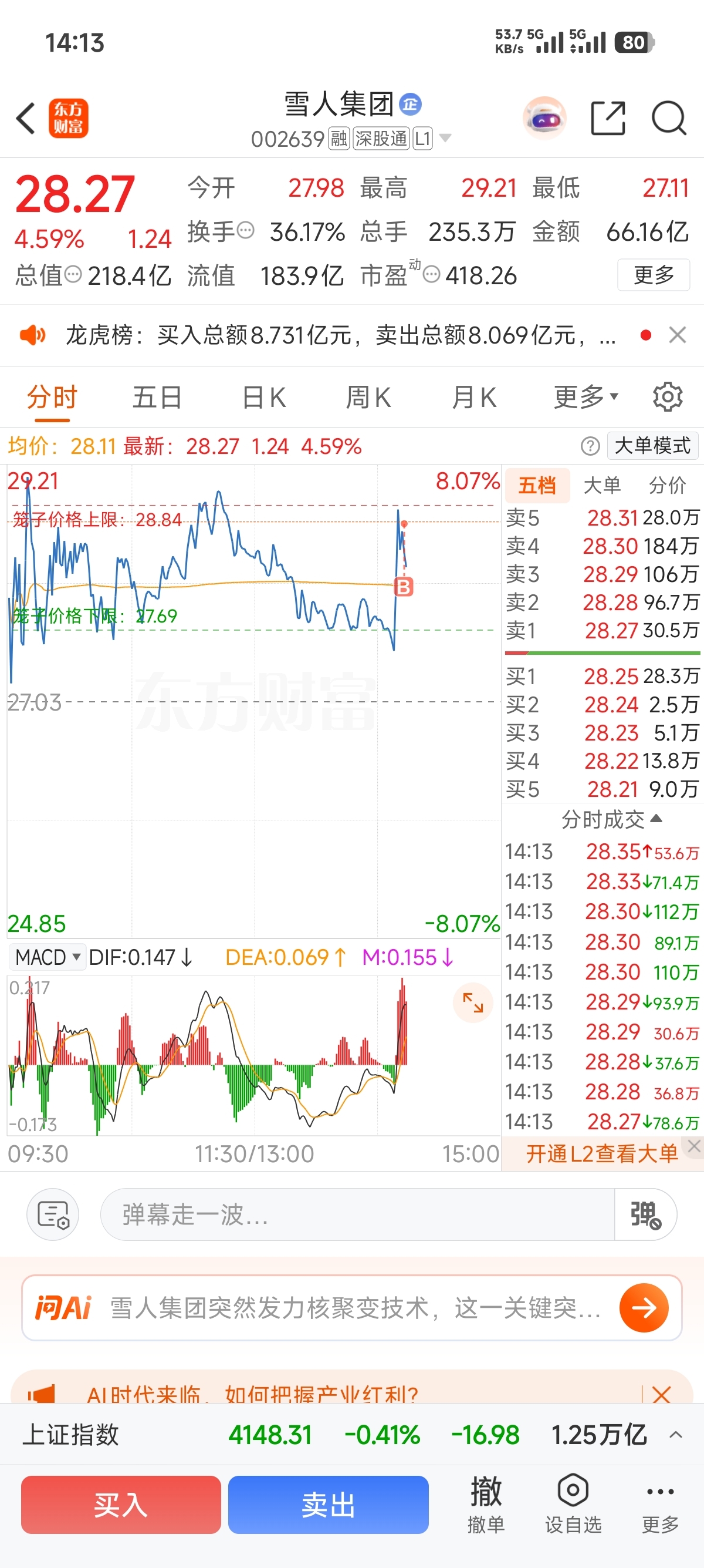 $雪人集团(SZ002639)$ 怪我 兄弟们。。。昨天没敢进,今天这样冲了 哎