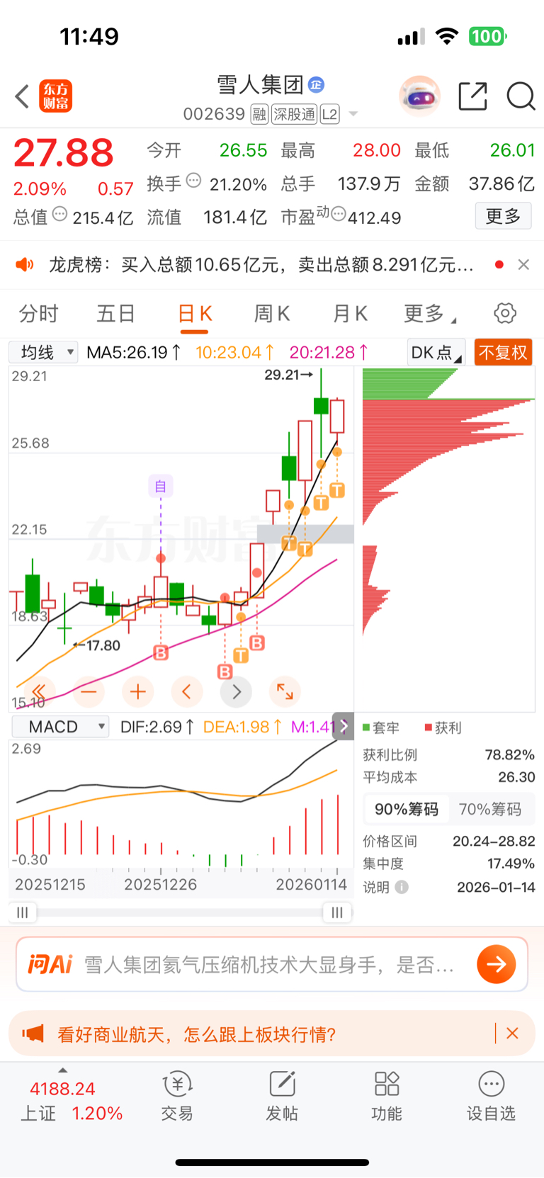 $雪人集团(SZ002639)$ 大幅度减仓了,谢谢雪人 ,股吧里的兄弟姐妹吃肉