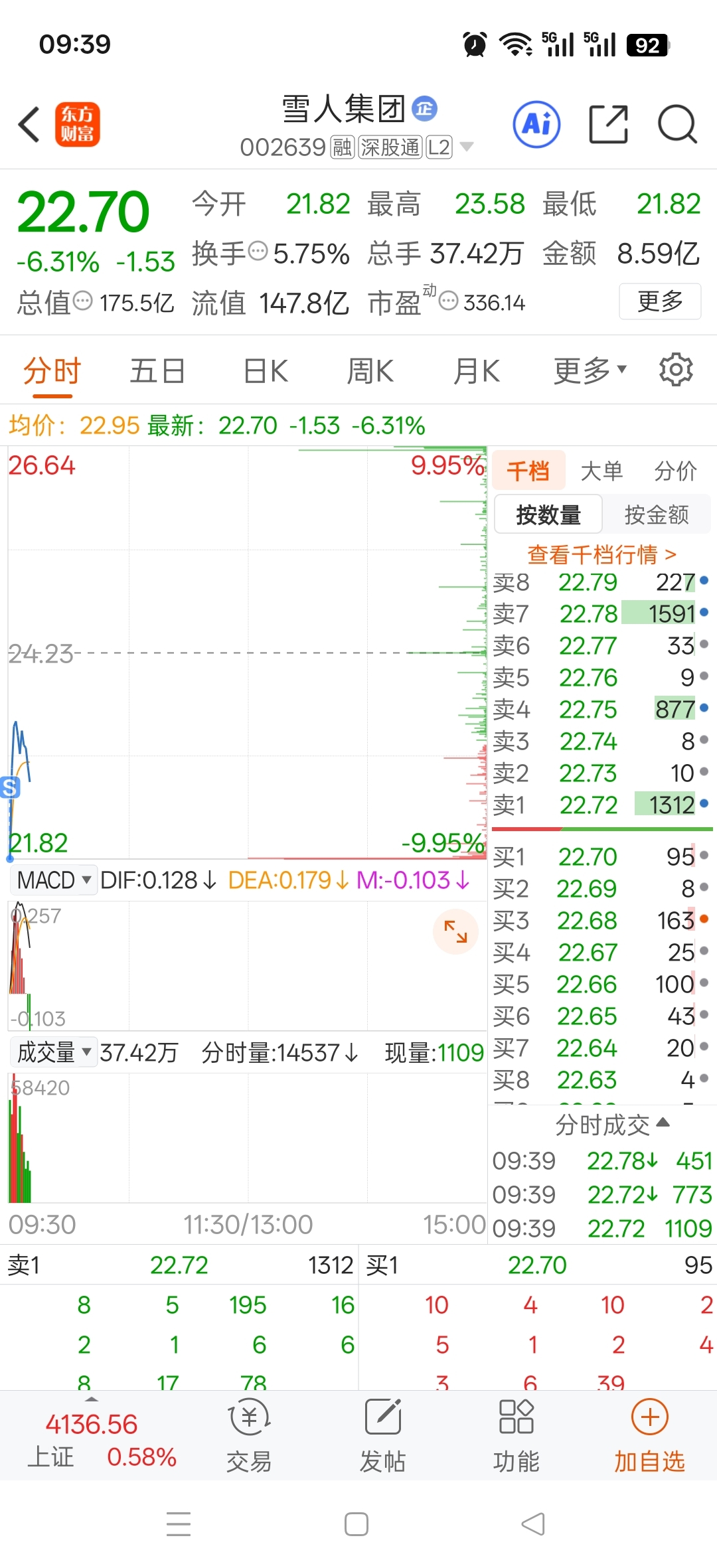 $雪人集团(SZ002639)$ 亏了26个点,跌停竟价卖了!!