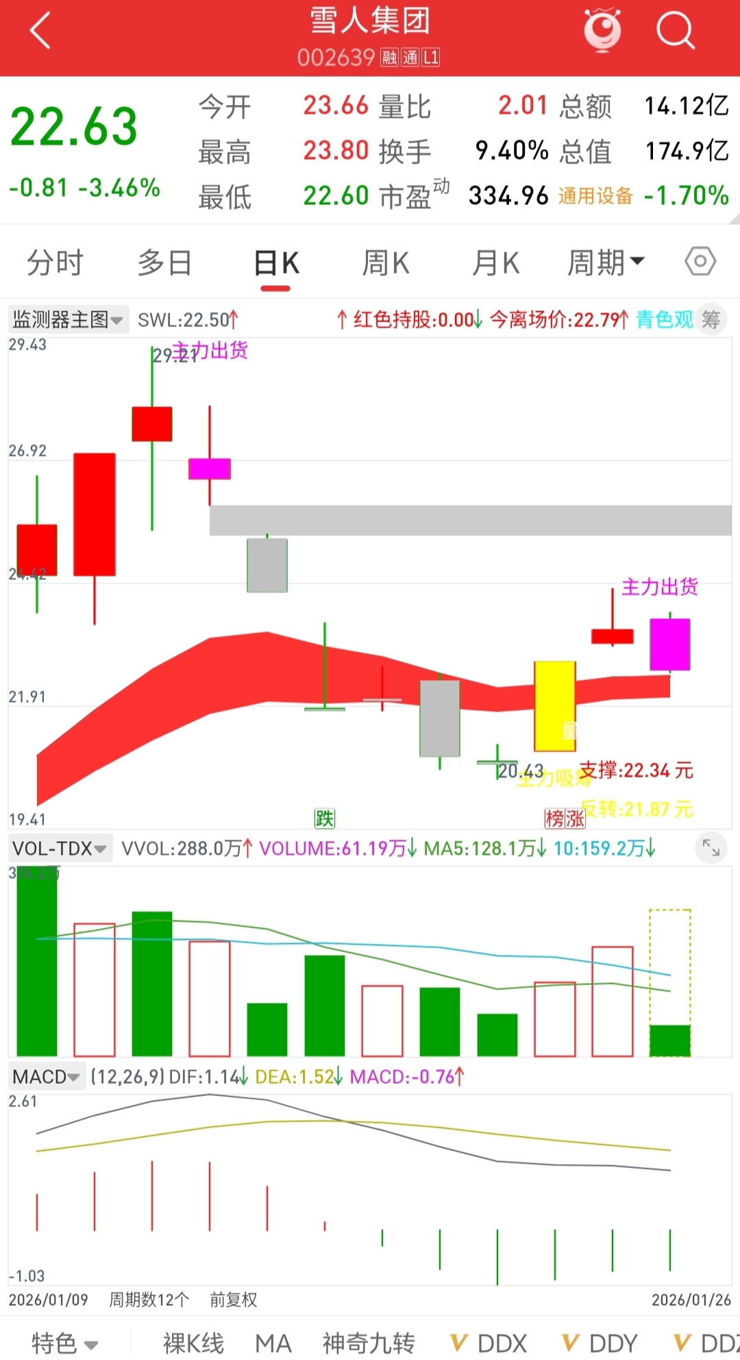 $雪人集团(SZ002639)$ 主力在出货,快跌破支撑位了