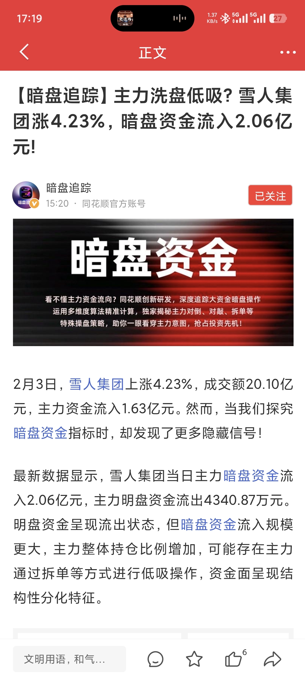 $雪人集团(SZ002639)$ 暗盘数据