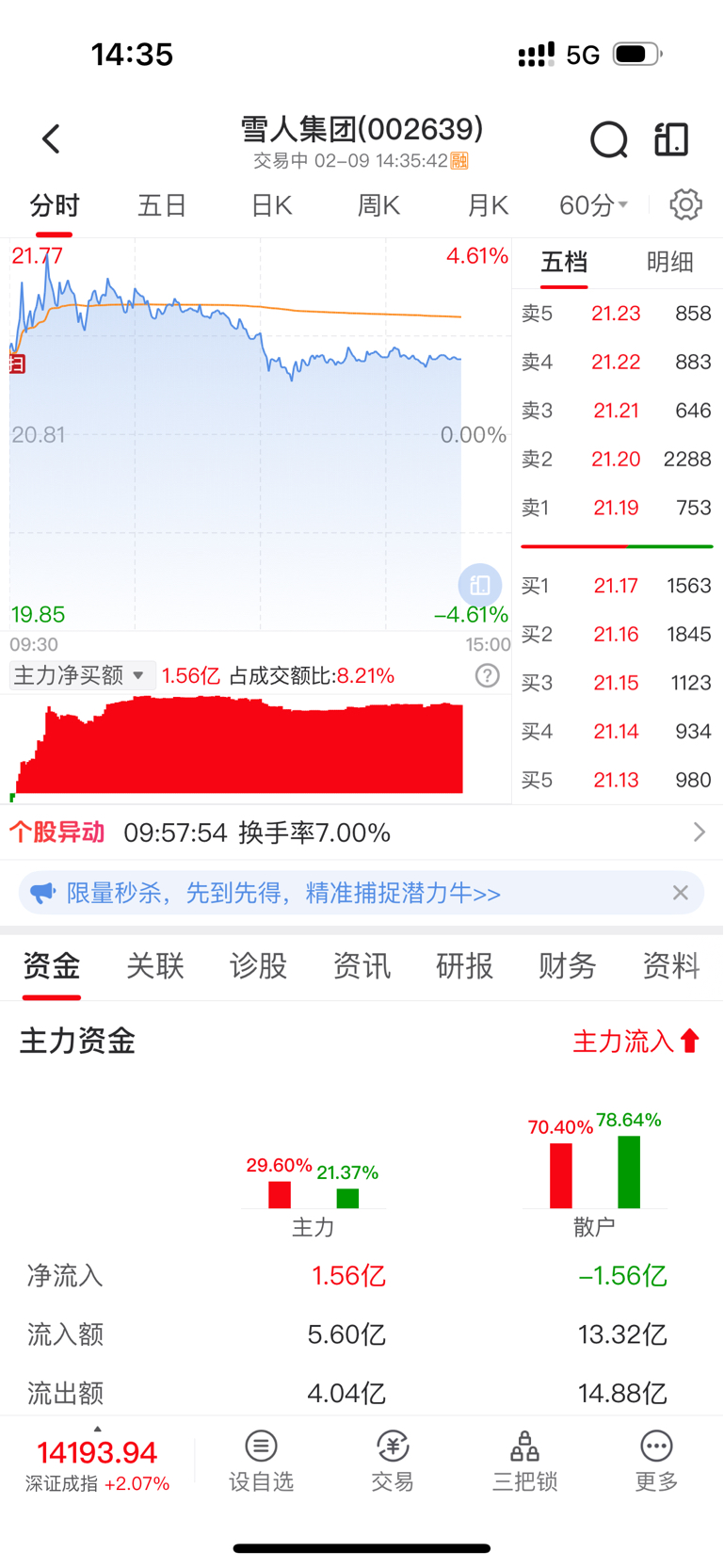 $雪人集团(SZ002639)$