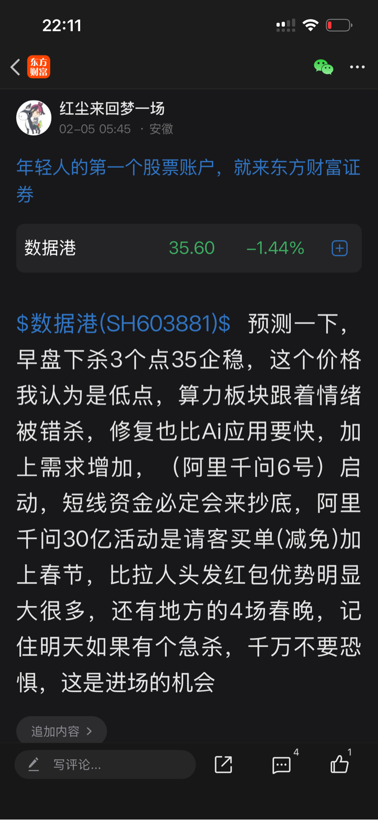 郑重声明:用户在财富号/股吧/博客等社区发表的所有信息(包括但不限于文字、视频、音频、数据及图表)仅代表个人观点,与本网站立场无关,不对您构成任何投资建议,据此操作风险自担。请勿相信代客理财、免费荐股和炒股培训等宣传内容,远离非法证券活动。请勿添加发言用户的手机号码、公众号、微博、微信及QQ等信息,谨防上当受骗!