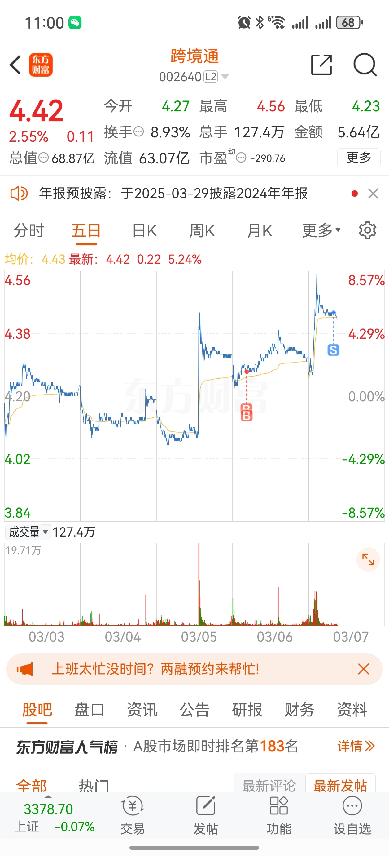 $跨境通(SZ002640)$ 格局一下,少赚两个点 走了 兄弟们发财 落袋为安