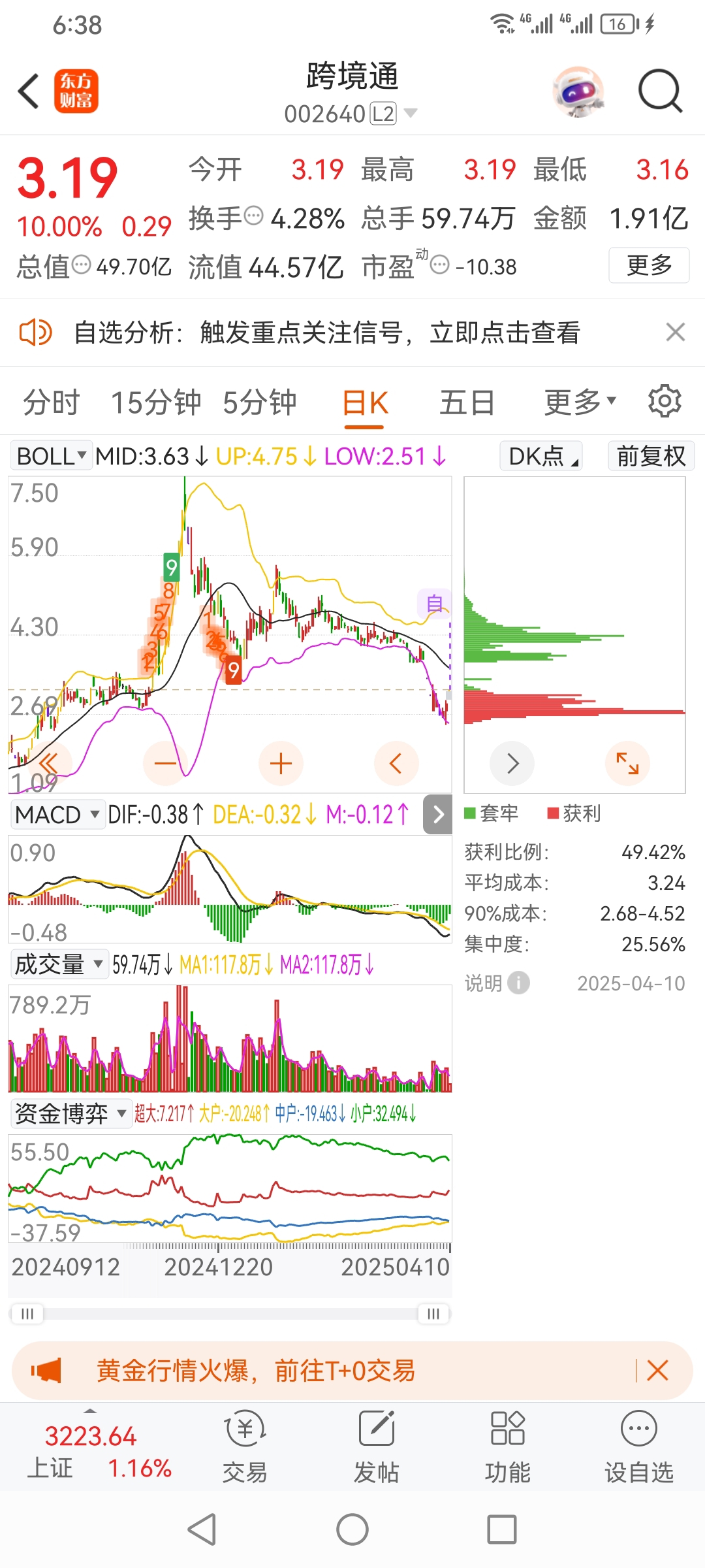 $跨境通(SZ002640)$ 军哥 跨境通 设置止盈 参与。#收盘点评#