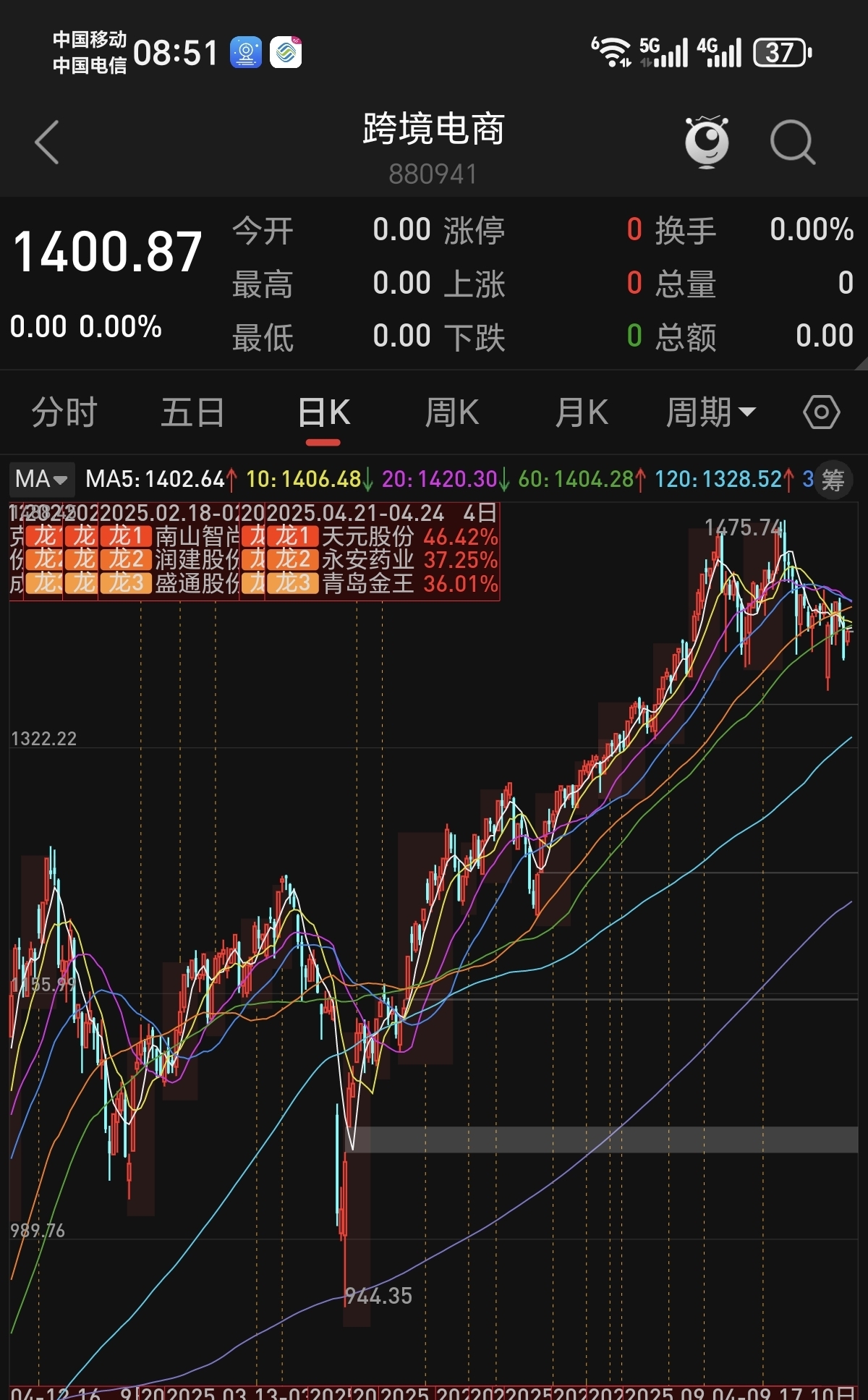 $跨境通(SZ002640)$ 跨境电商板块目前处于高位回落阶段,还没找到支撑,现在进的大部分会被套,就算起来也需要很长一段时间。