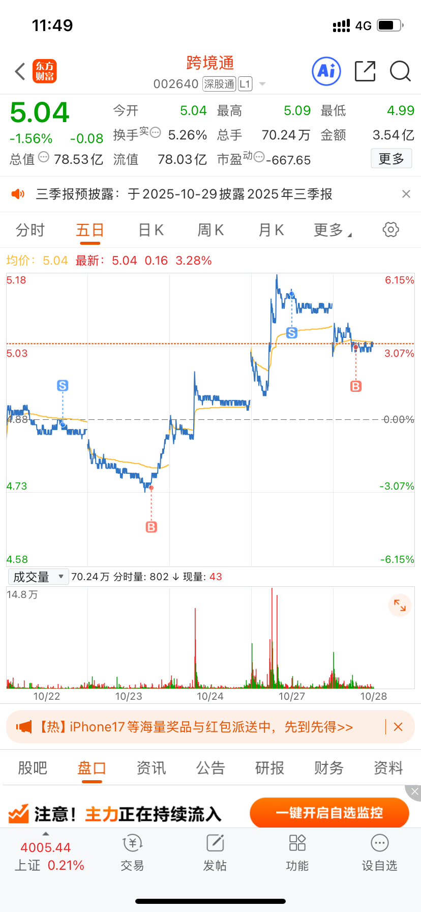 $跨境通(SZ002640)$ 补了,看下午结果,估计会涨到四个点,看结果