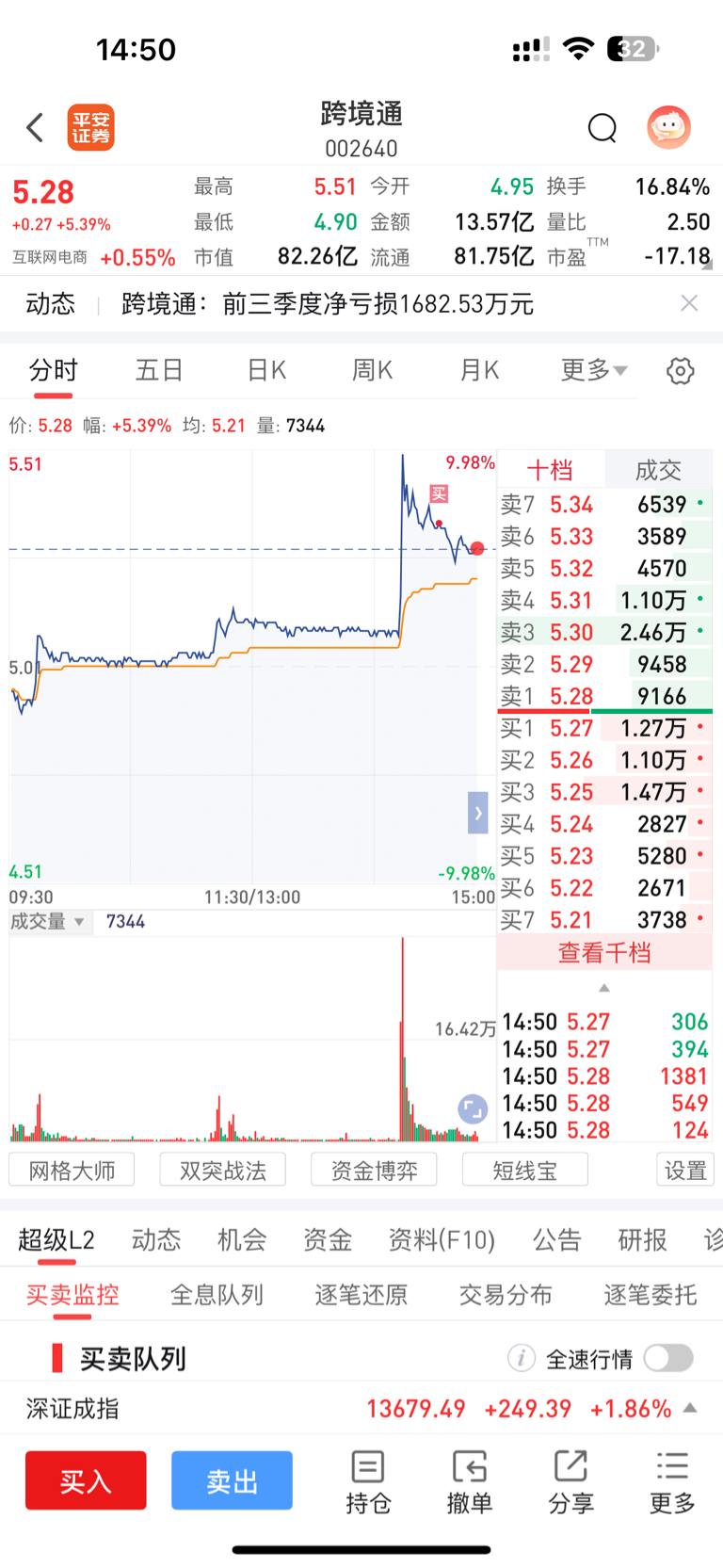 $跨境通(SZ002640)$ 还好没买在最高点,马马虎虎吧。