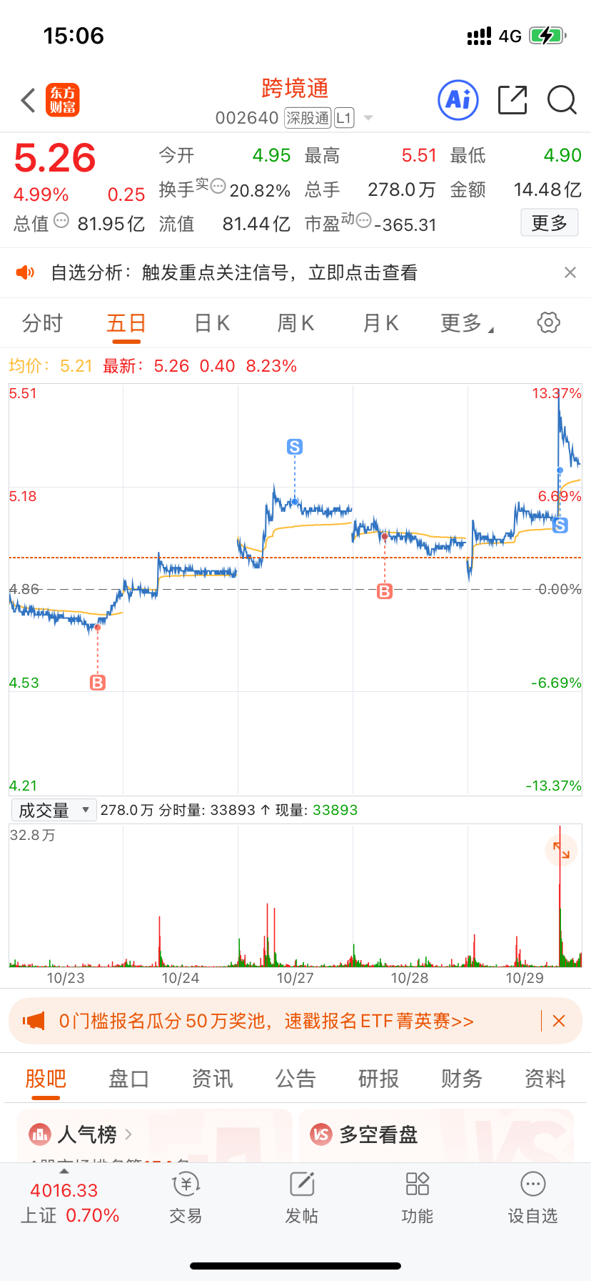 $跨境通(SZ002640)$ 亏死去,睡了一觉,之前设置的价格,自动卖出了
