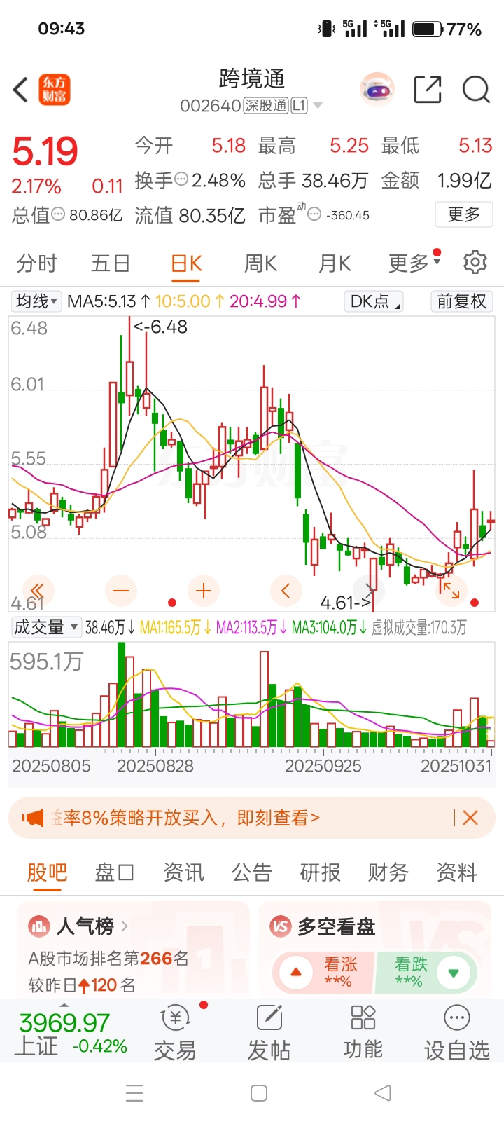 $跨境通(SZ002640)$ 今天送的福利,跨境通商务利好,双11到来,消息面还是属于利好,形态上筑底反弹没多大问题,坐稳扶好,起飞!!!