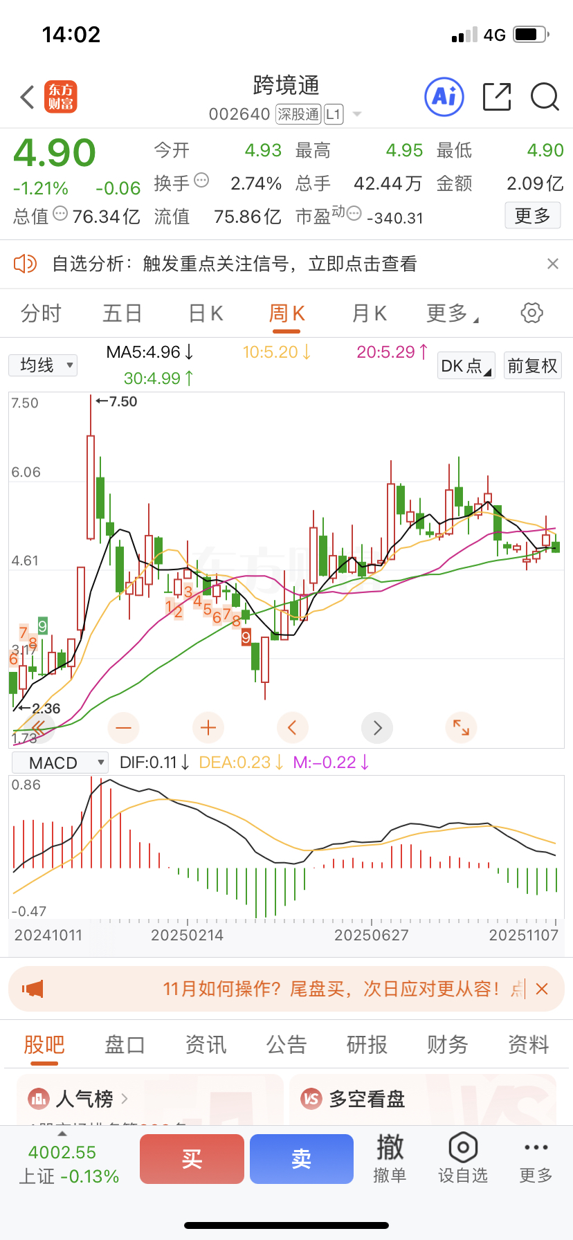 $跨境通(SZ002640)$ 明显没调整到位,还得调