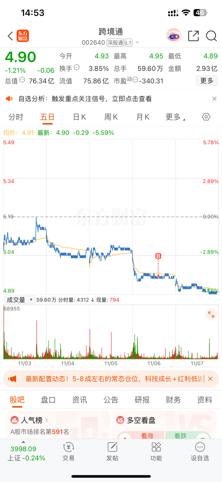 $跨境通(SZ002640)$ 阶段式的清散户?这搞跨境的心都这么脏?