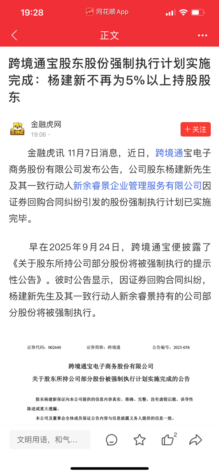 $跨境通(SZ002640)$ 实施完成了,利空以落地,下周起飞吧~