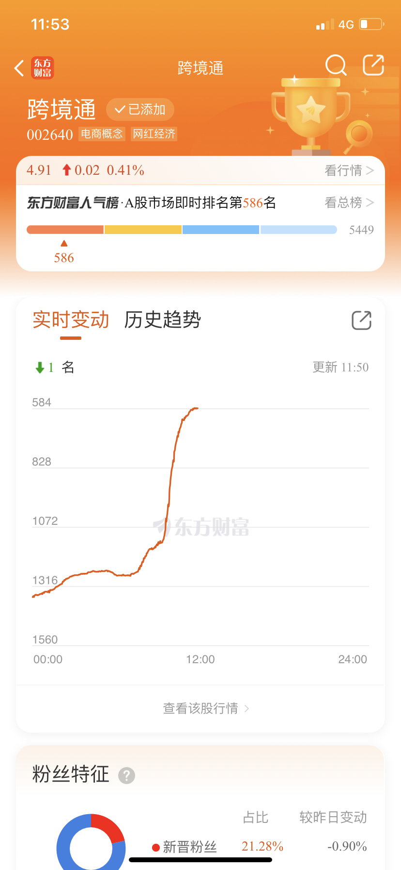 $跨境通(SZ002640)$ 涨都没涨,居然人气上升这么多,知名度太高了