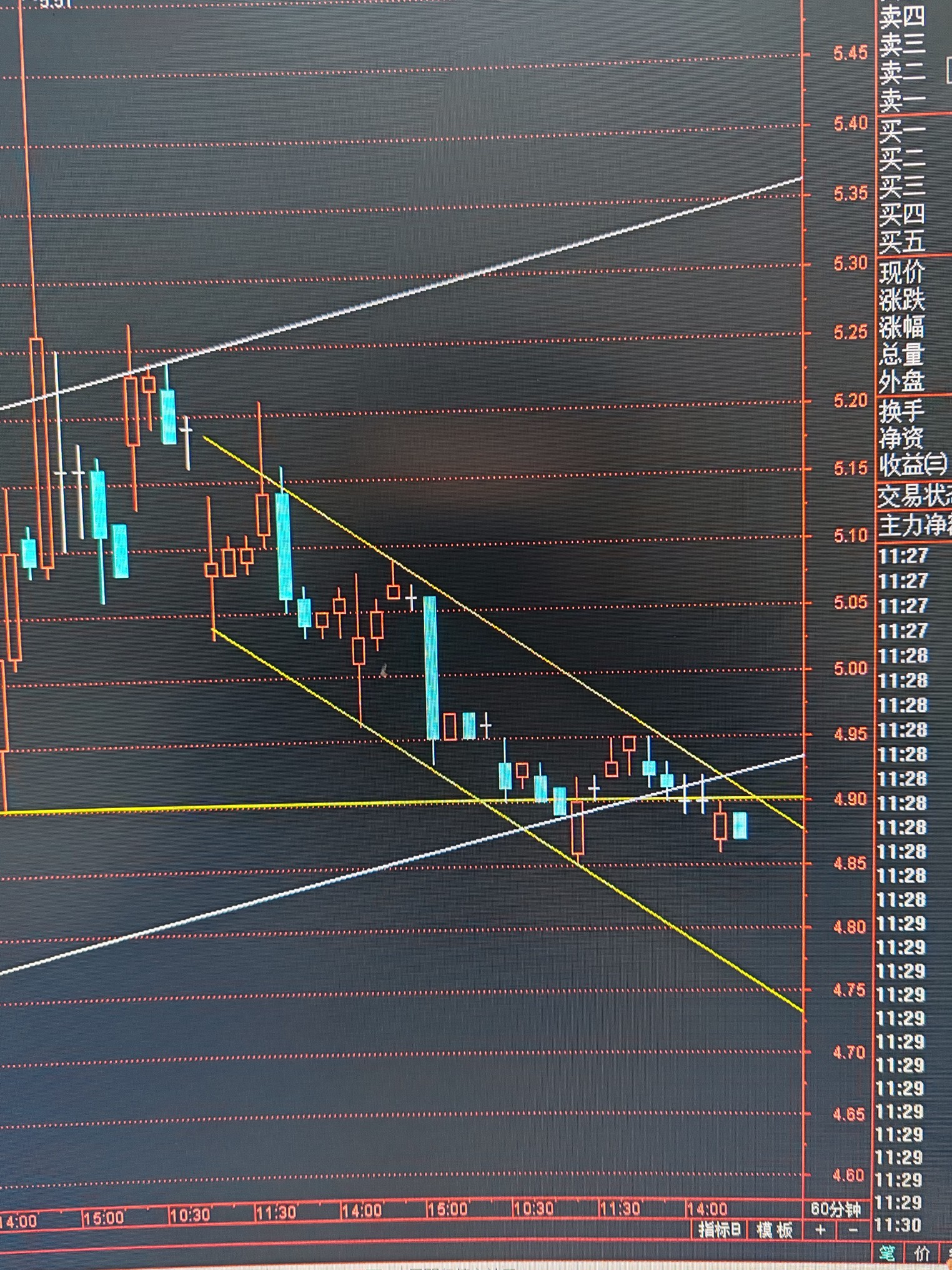 $跨境通(SZ002640)$ 60分钟为下跌通道,大周期已跌破趋势线。