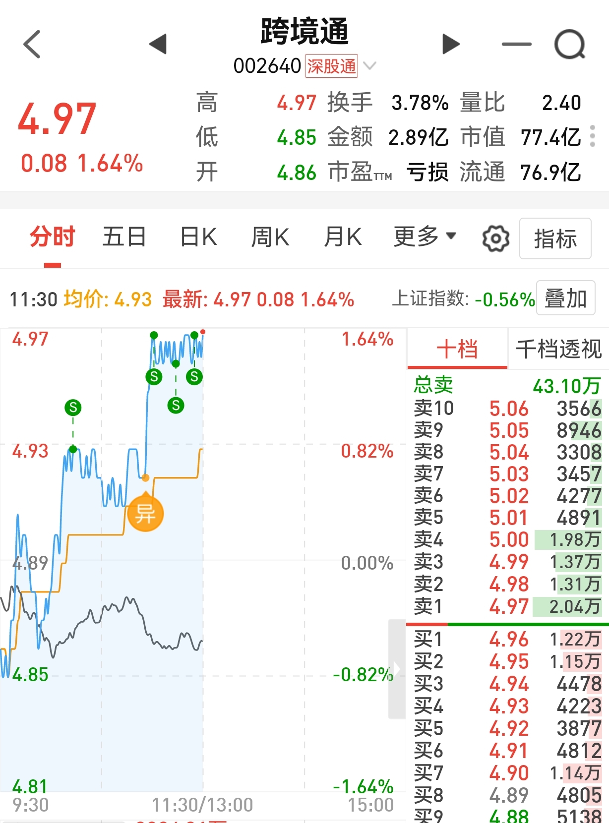 主力,你想要的筹码都给你了。4.97元该走的也走了。涨跌你随意。看看丽人丽妆,值