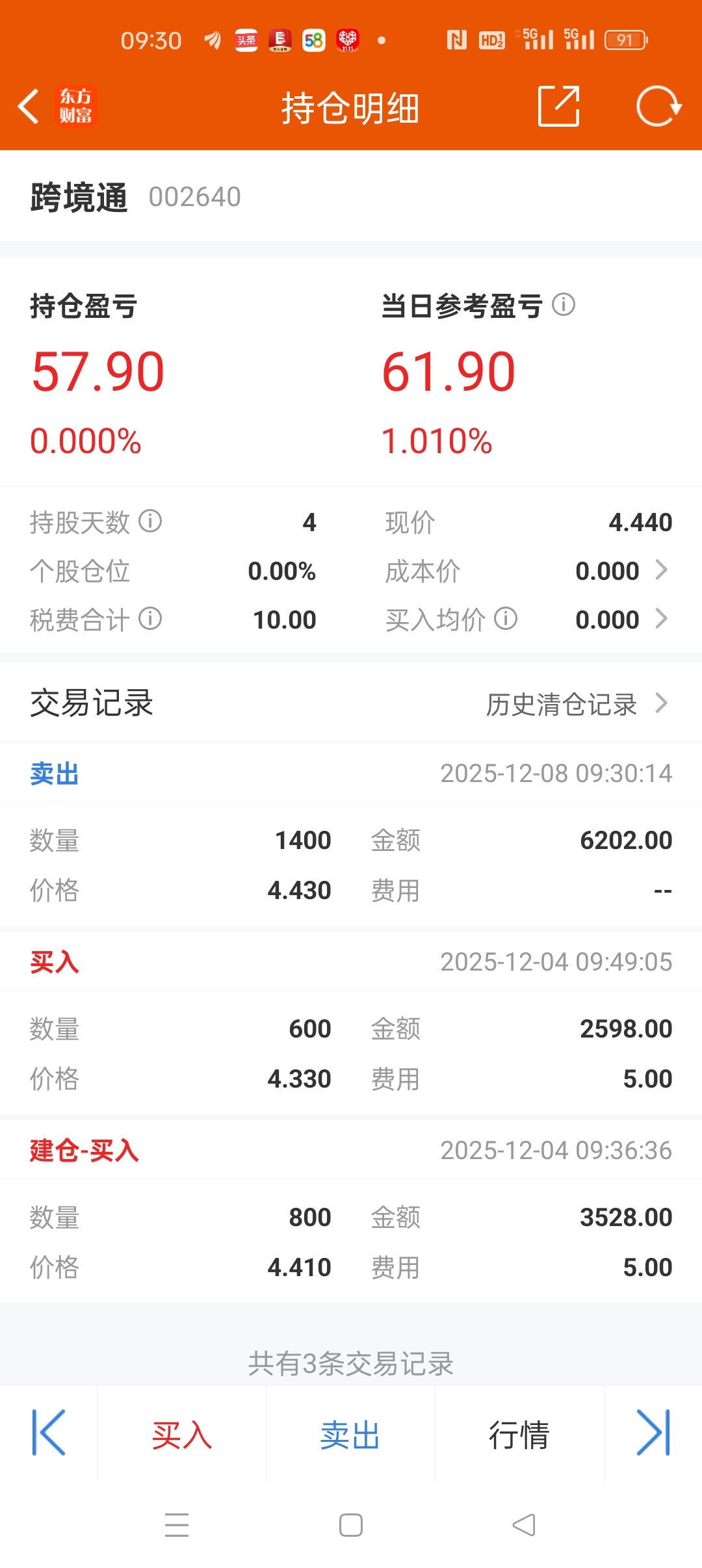 $跨境通(SZ002640)$ 解套走了,祝留下的发财