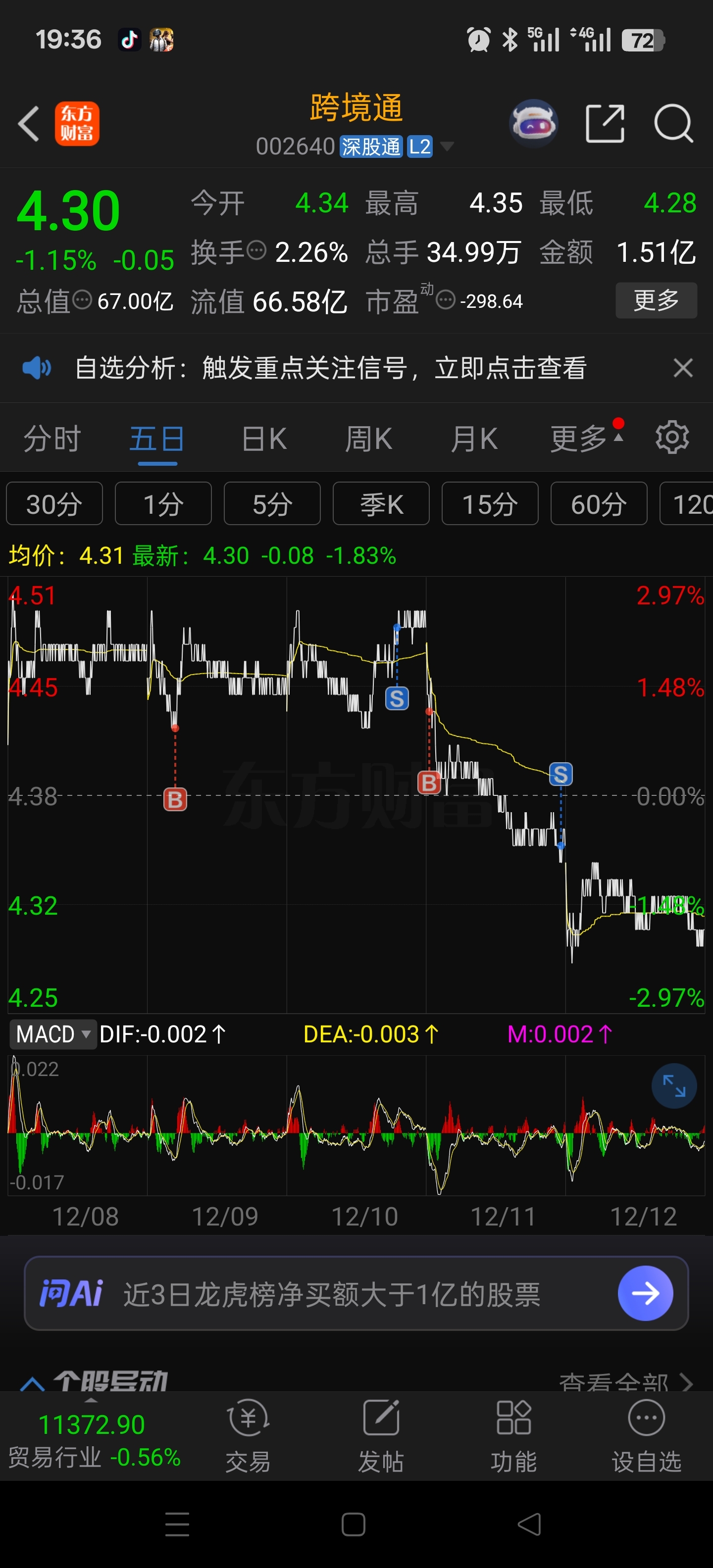 $跨境通(SZ002640)$ 割了,你可以拉了