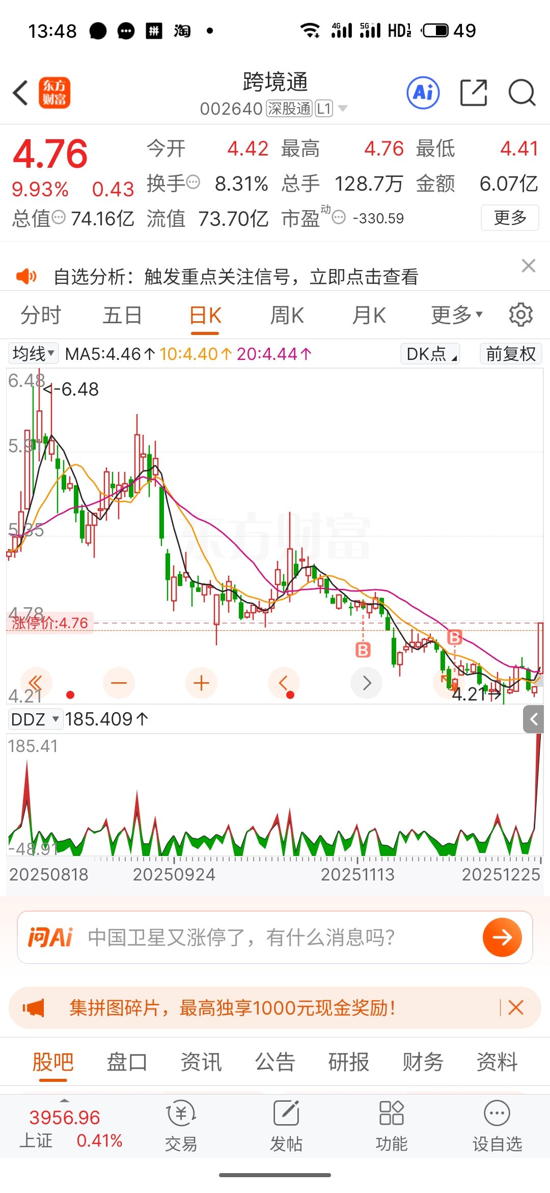 $跨境通(SZ002640)$ 跟着主力有肉吃,坚定持有,不是为了解套,是为了挣钱,车上的发财。