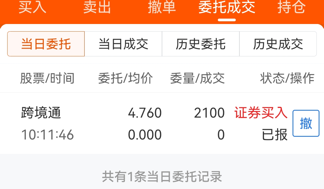 $跨境通(SZ002640)$ 早上挂的硬是没买进